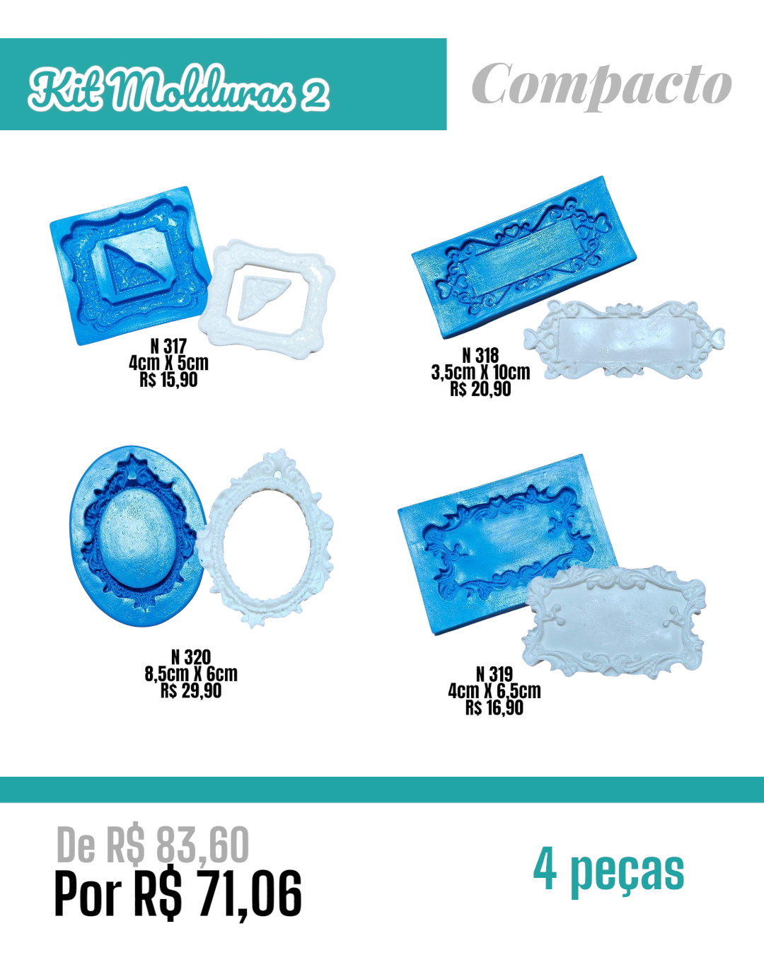 Esse kit é composto por 4 moldes de silicone, sendo: