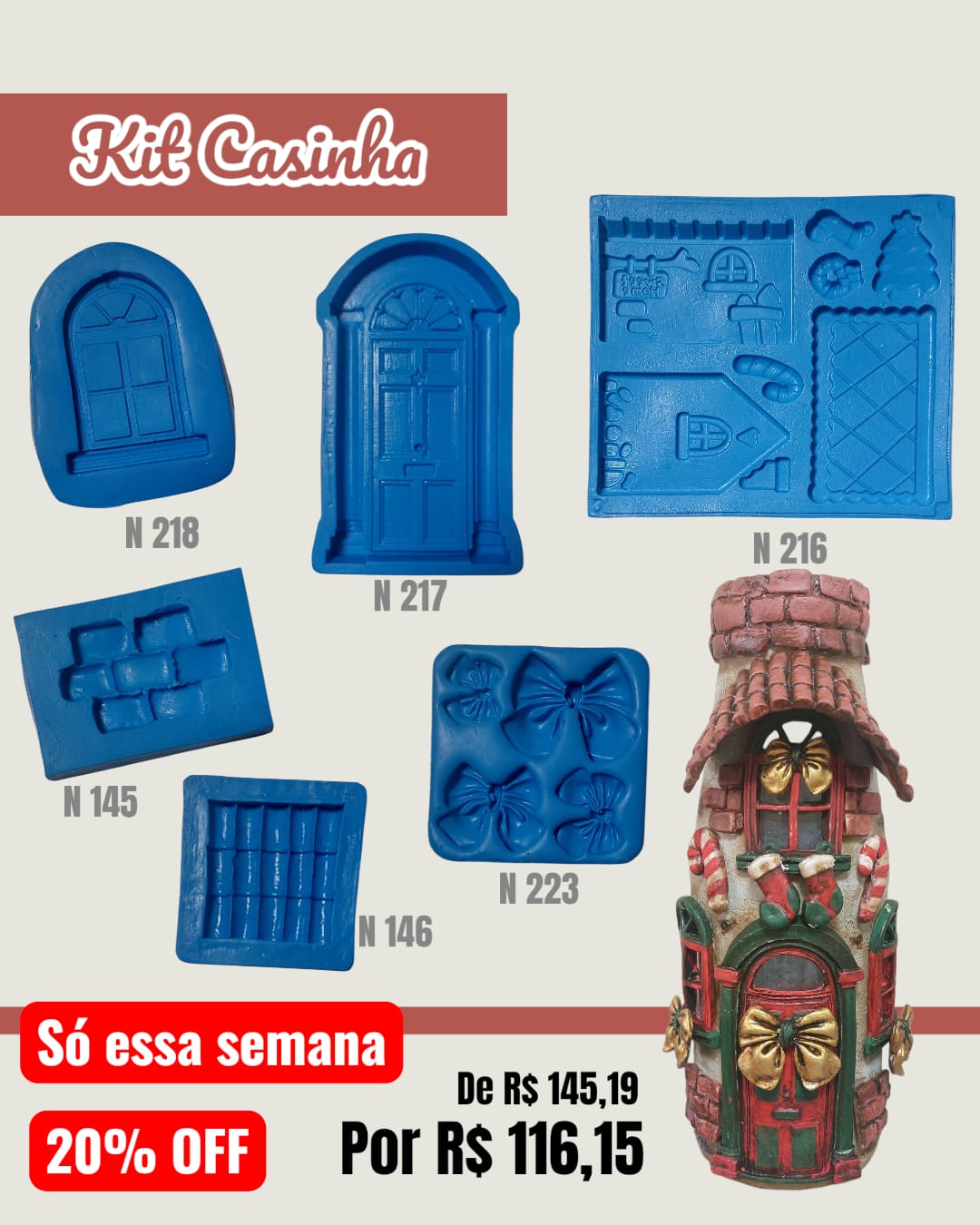 Kit Casinha de Natal, composto por 6 moldes de silicone: