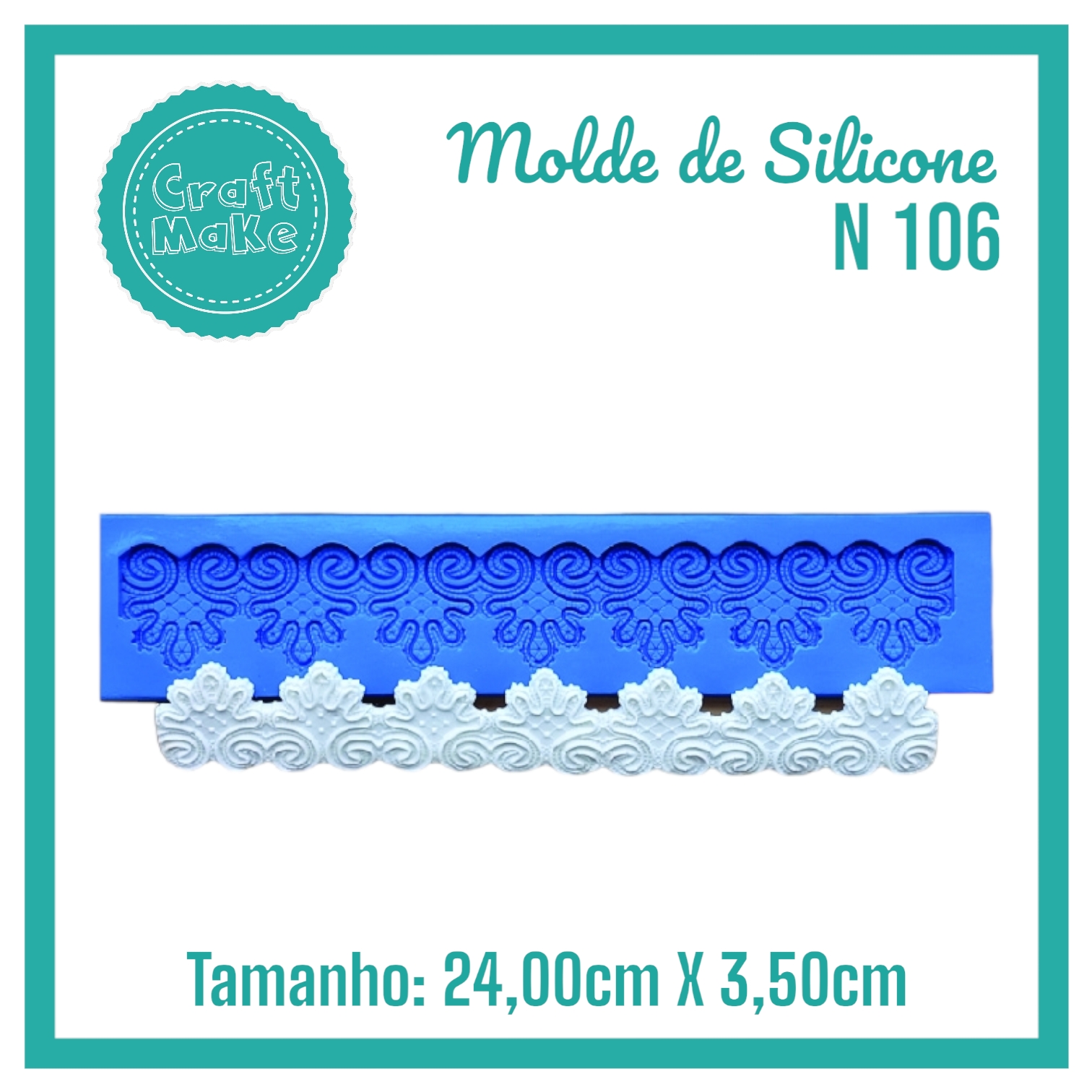 Molde flexível, fabricado com borracha de silicone para artesanato. Pode ser usado com massa de biscuit, resina epóxi, resinas em geral, parafina, gesso, glicerina (sabonete) e outros testados previamente. Alguns modelos não são indicados para usar com massa de biscuit devido sua anatomia profunda, esses indicamos que seja utilizado resina.