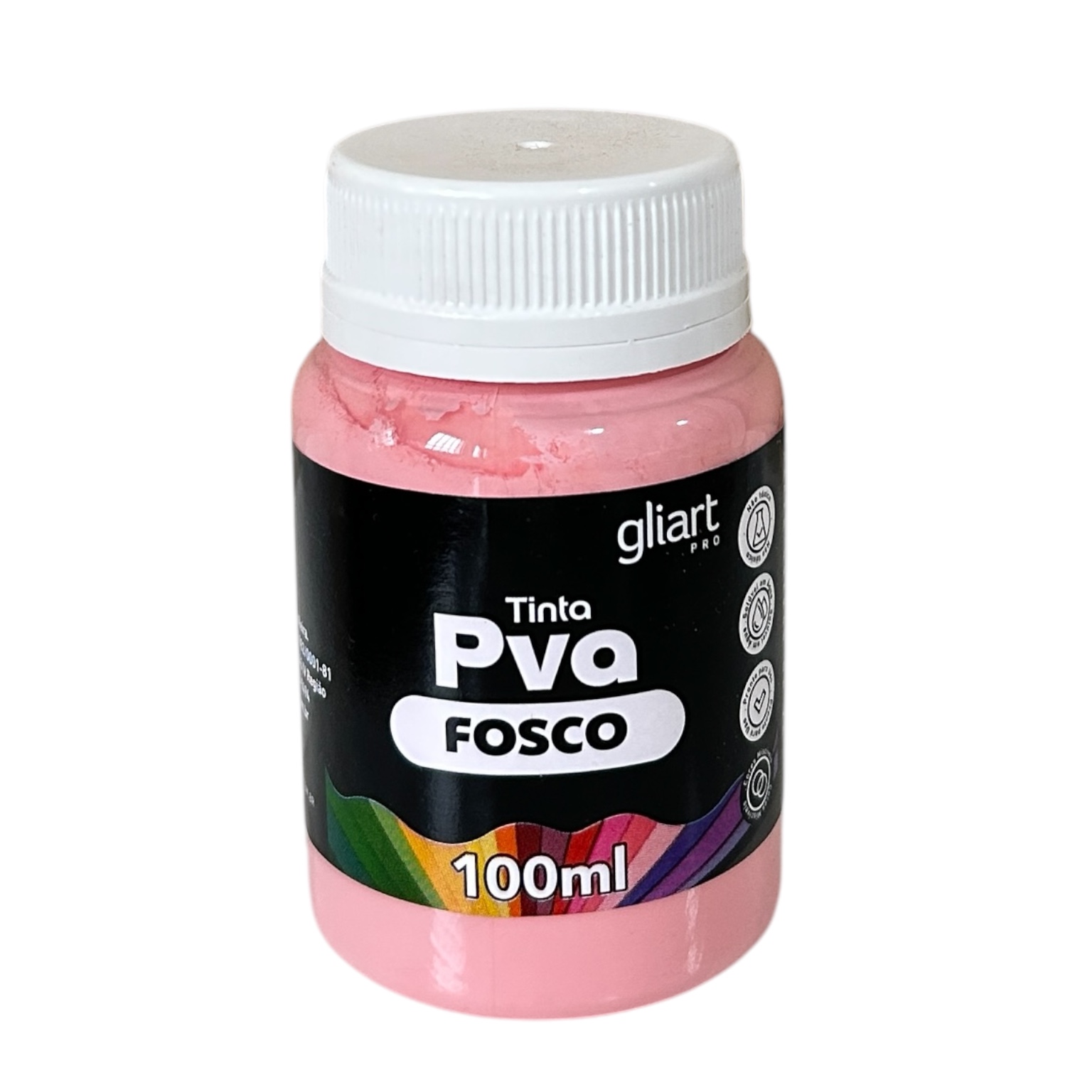 Tinta PVA Fosca para trabalhos artesanais.Indicado para madeira, MDF, gesso, cerâmica, EVA e isopor. Pode ser utilizado em superfícies lisas como PET, vidro, metal após aplicação do Primer Gliart. Outras Superfícies, testar antes.